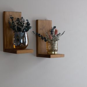 Small wood wall hanging with shelf for plants or decor. Sawtooth hanger on the back (screws/nails not included). Pictured in Early American stain (photos 1-3) and Jacobean stain (video and photos 4-6).